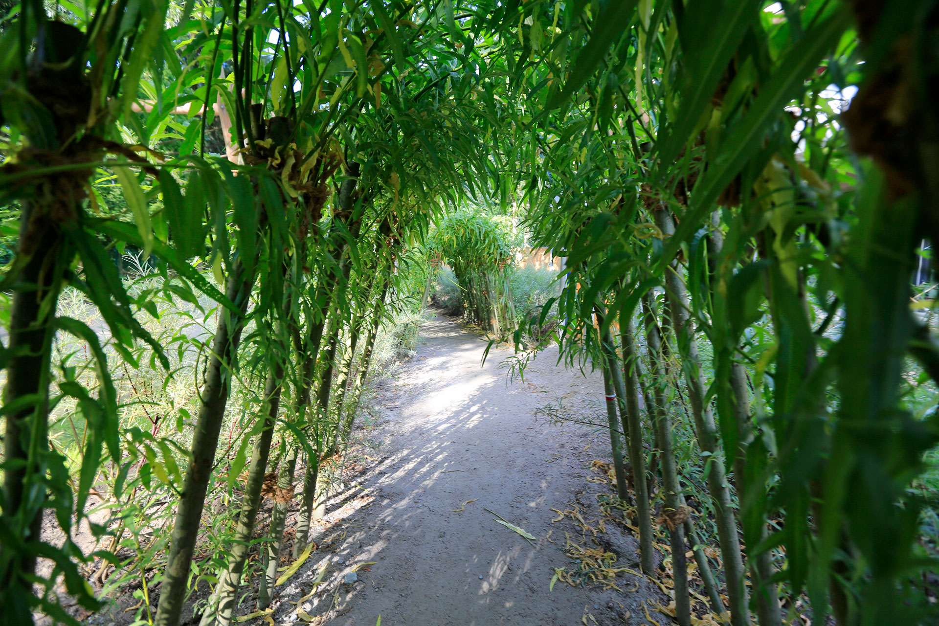 Der Bereich für die älteren Kinder wird durch eine Strauchpflanzung vom Krippenbereich getrennt. Ein Fühlpfad mit zwei Weidentunneln verläuft entlang der zwei Spielbereiche und wird damit zur beidseitigen Begegnungsfläche der Kinder. Weitere Spielmöglichkeiten befinden sich im westlichen Bereich der Anlage. Spiel- und Klettertürme fügen sich in die vorhandene Topografie ein und bieten mit Steg, Klotzbrücke und Balanciertampen ein abwechslungsreiches Spielerlebnis.